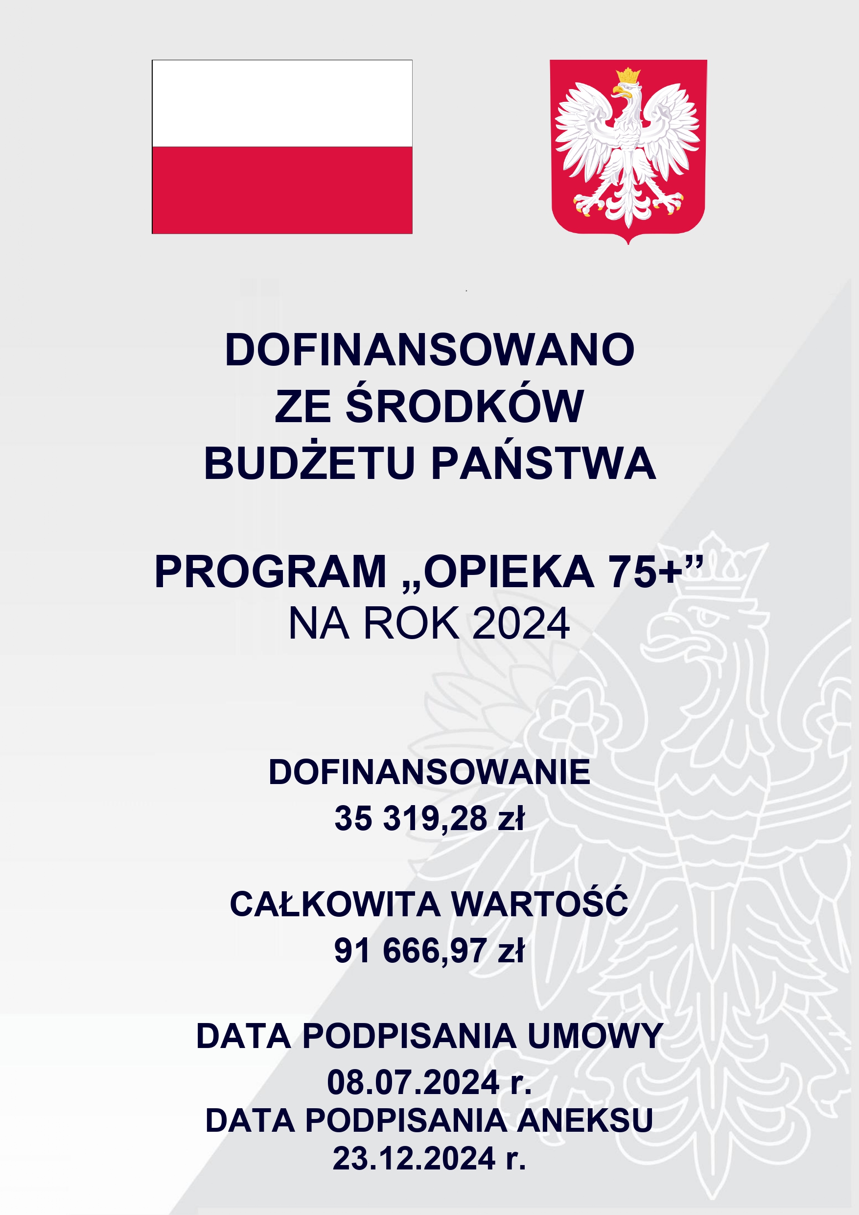 Łączny koszt programu „Opieka 75+” w 2024r. wynosi 91.666,97 zł.